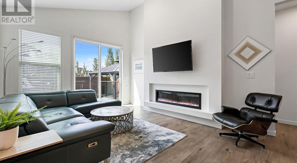 Enjoy the convenience of main floor laundry, a walk-in pantry, and floor-to-ceiling cabinetry in a chef-inspired kitchen complete with a large island and stainless steel appliances. The main floor boasts luxury vinyl plank flooring throughout, a cozy electric fireplace, and expansive windows that fill the space with natural light while offering serene views of your private, fully fenced backyard. Step outside to a low-maintenance yard with a pergola-shaded patio, garden space, and gas BBQ line—perfect for summer entertaining.